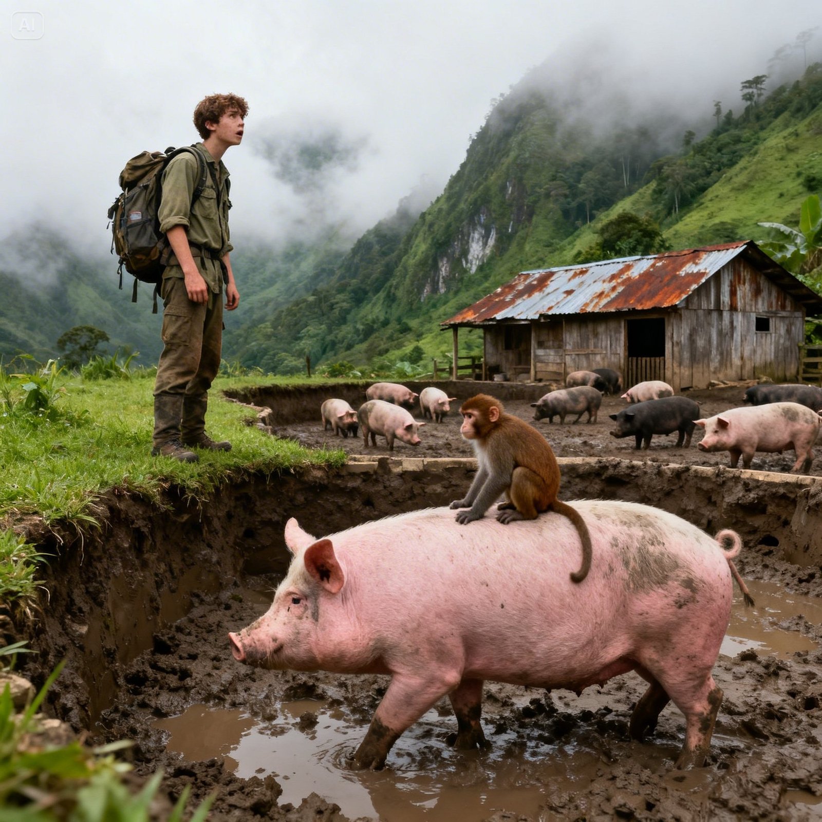 The monkey hadn’t just survived; he had managed. He had led the pigs to high-ground foraging spots, alerted them to predators, and even herded them back to the relative safety of the mud pits near the old shack every evening. Silas stood paralyzed, realizing that the “beasts” he had abandoned were more capable of loyalty and community than the humans who had fled.