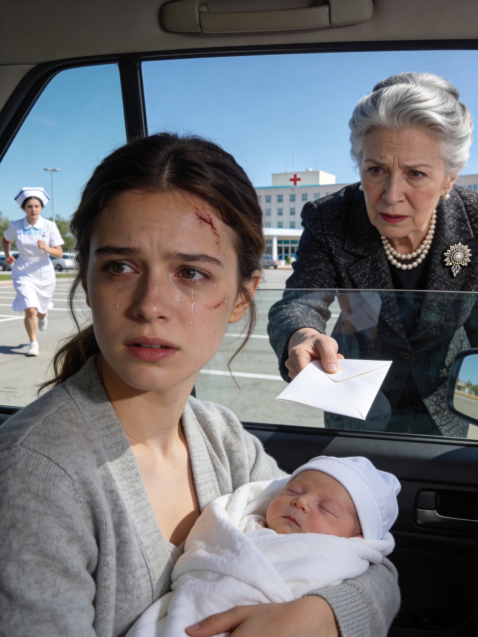 As Beatrice was arguing about the car seat, Nurse Sarah leaned through my open window. She pressed a small, crumpled white envelope into my hand. She didn’t say a word, just gave me a look of pure, focused intensity before turning and walking away.